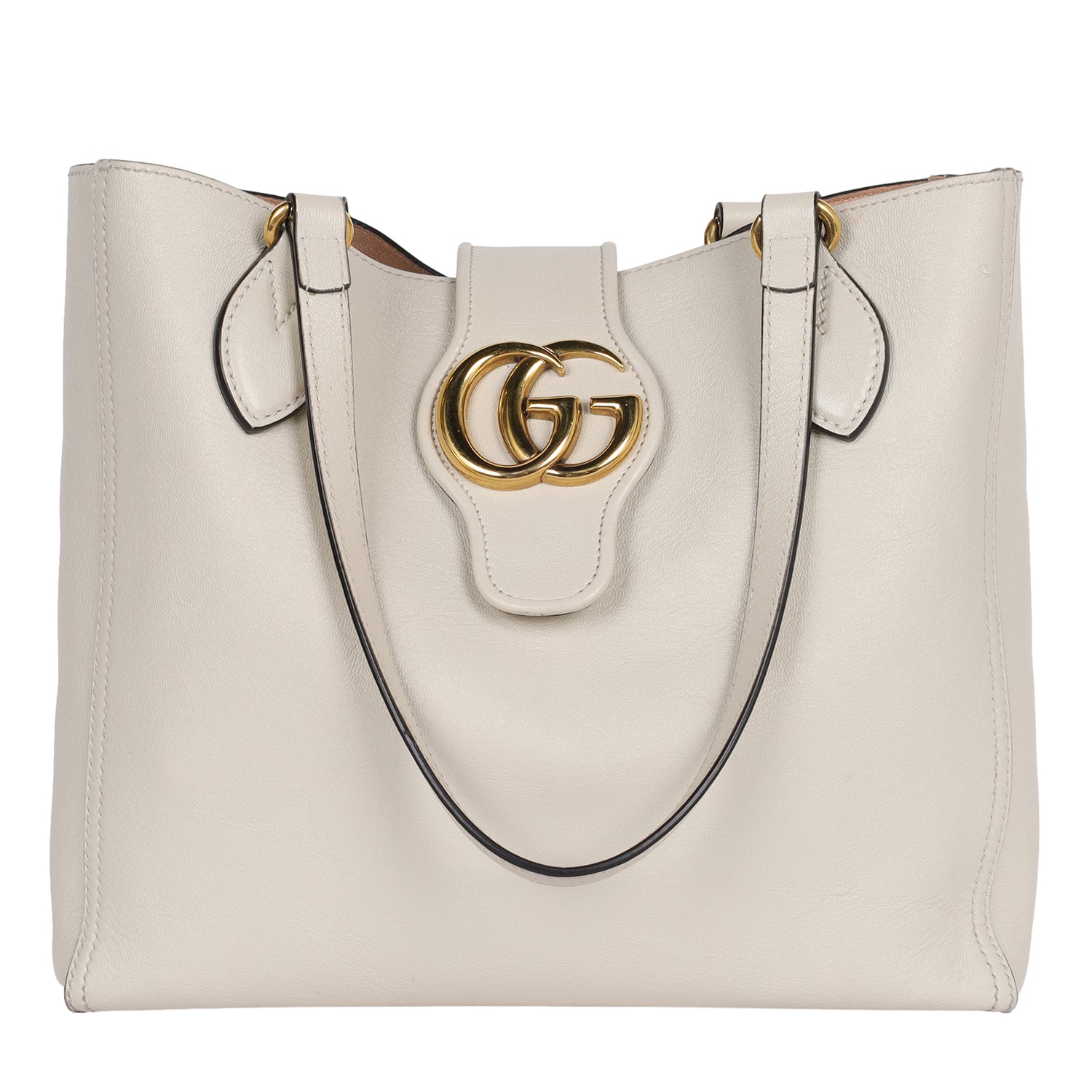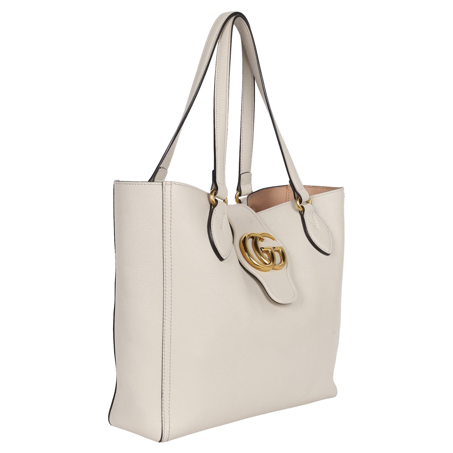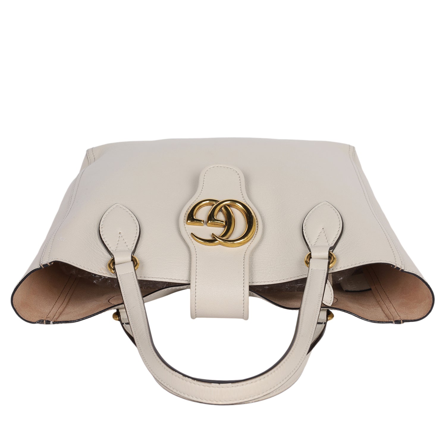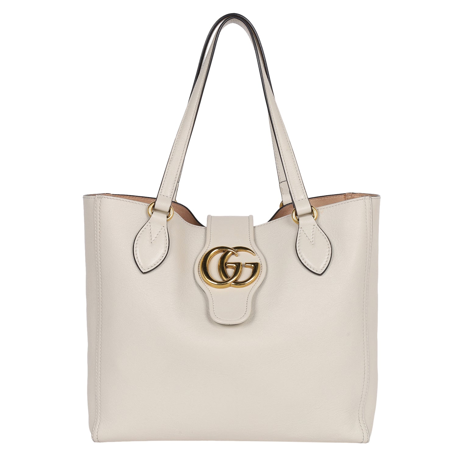 Authentic Gucci GG Sakai Calfskin Dahlia Shoulder bag in beige. This classic Gucci leather bag makes a perfect everyday bag. Features GG logo on the front closure, open top clasp closure, roomy interior with leather pochette, leather shoulder straps. This elegant tote will be your favorite bag as it easily holds all your daily essentials in style.