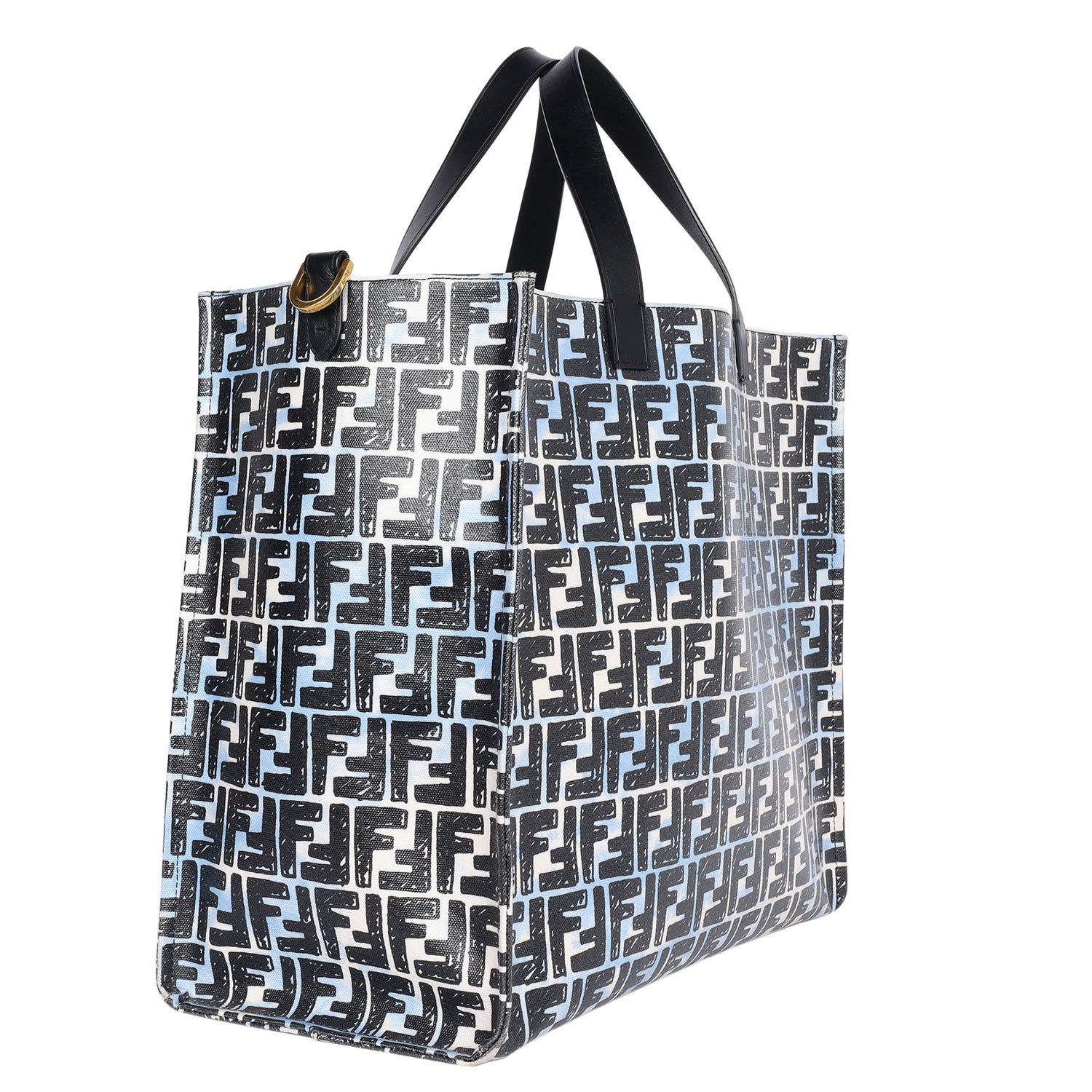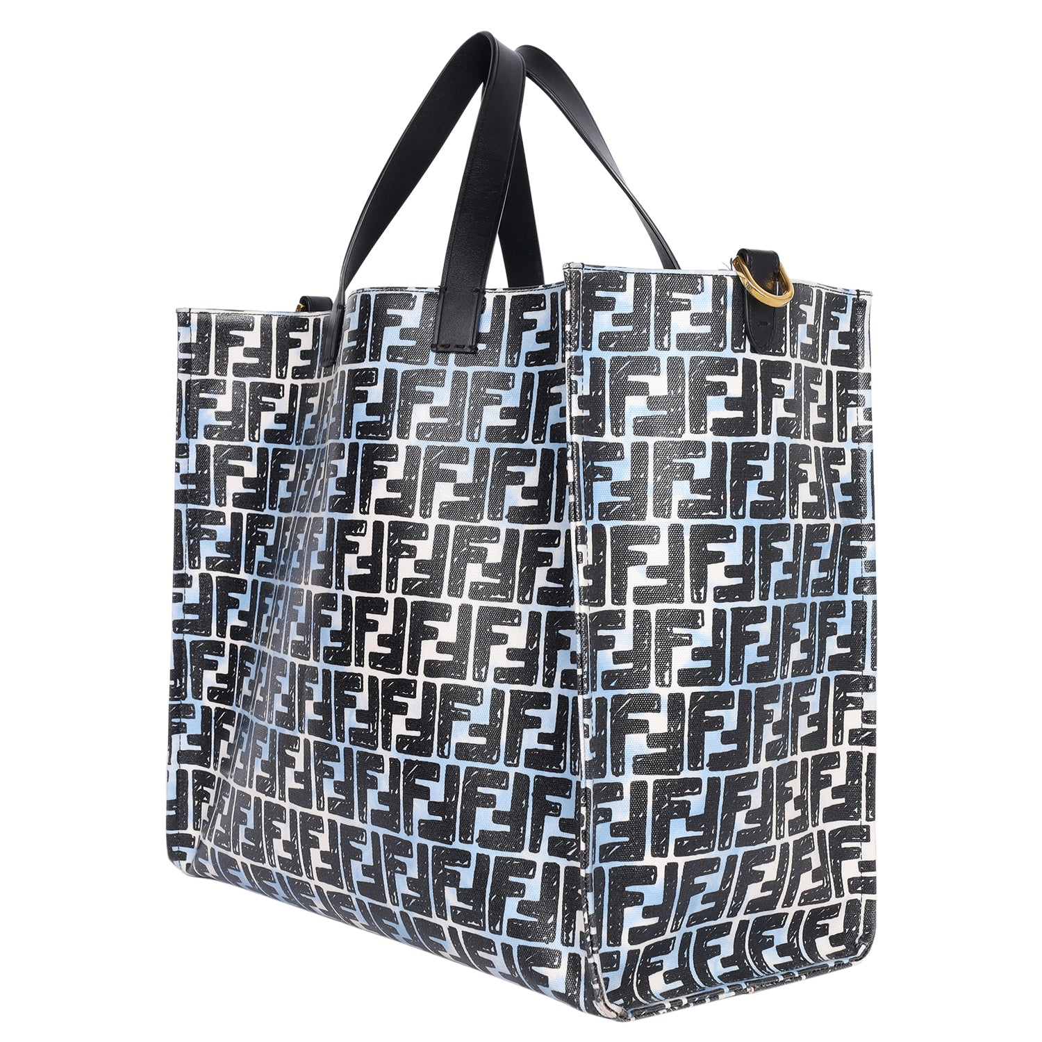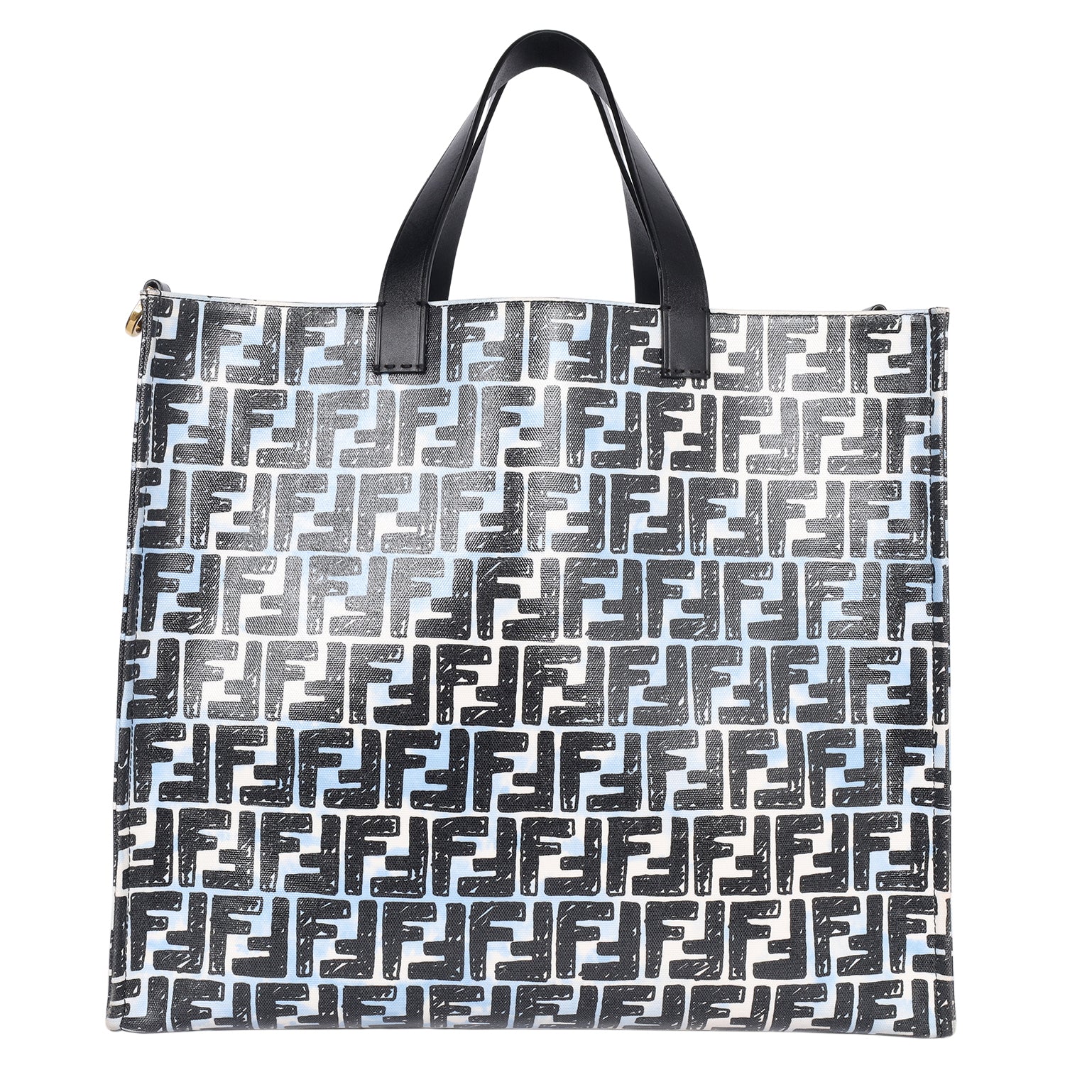Authentic Fendi Joshua Vides Zucca Coated Canvas Cloudy Shopper Satchel Tote. The 2020 Fendi x Joshua Vides "California Sky" Zucca Coated Canvas Tote Bag is a amazing tote. The bag is a limited-edition featuring Fendi's iconic Zucca pattern reimagined through Vides' signature black and white marker-style illustration, top handles, open top closure, coated canvas that is durable and practical, making it perfect for everyday use. Would be a amazing work bag, beach bag, diaper bag or travel bag.