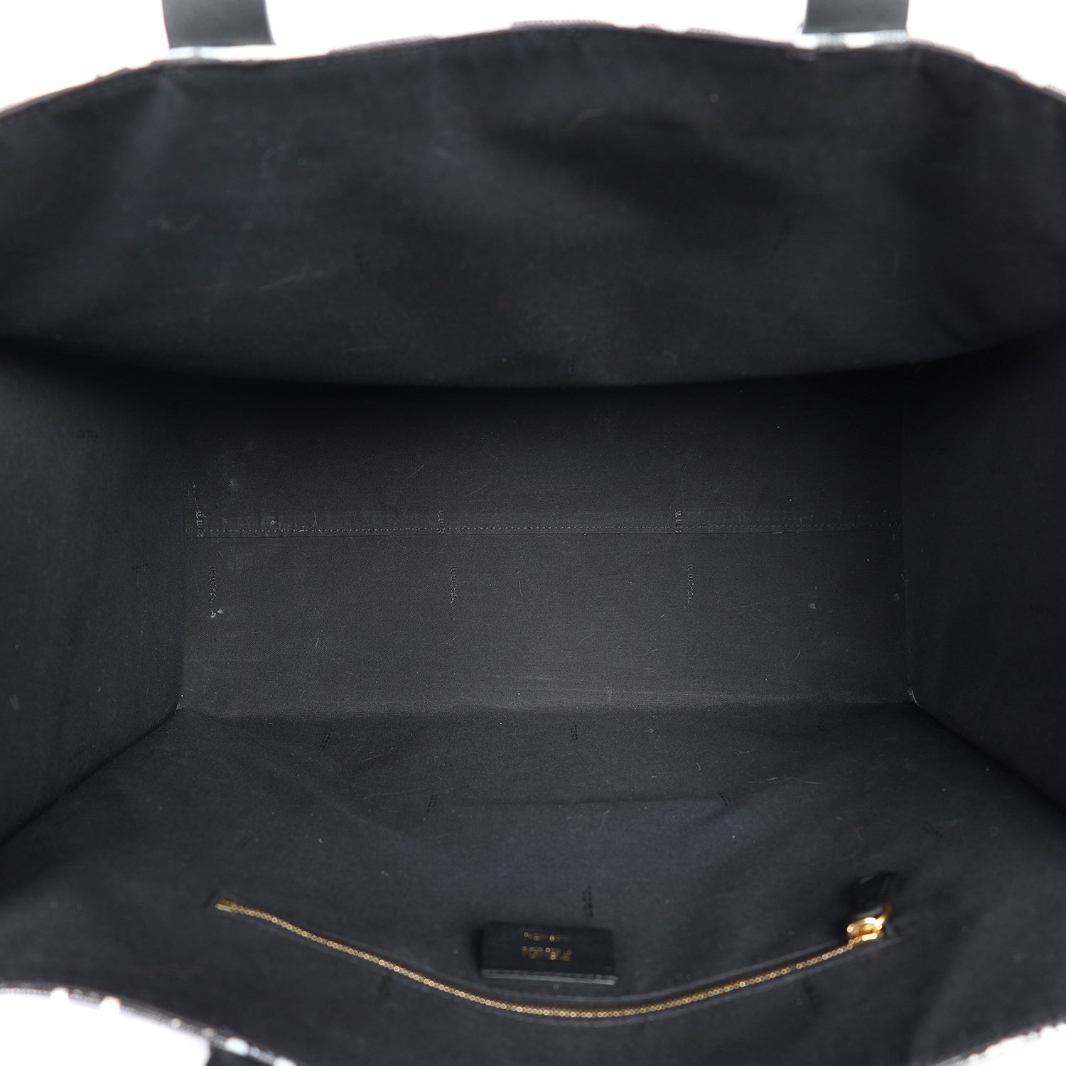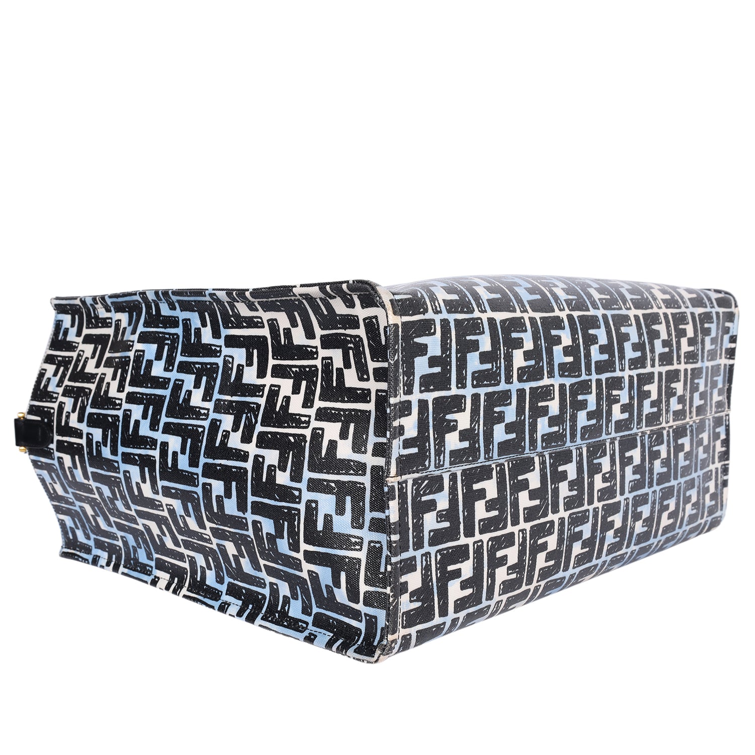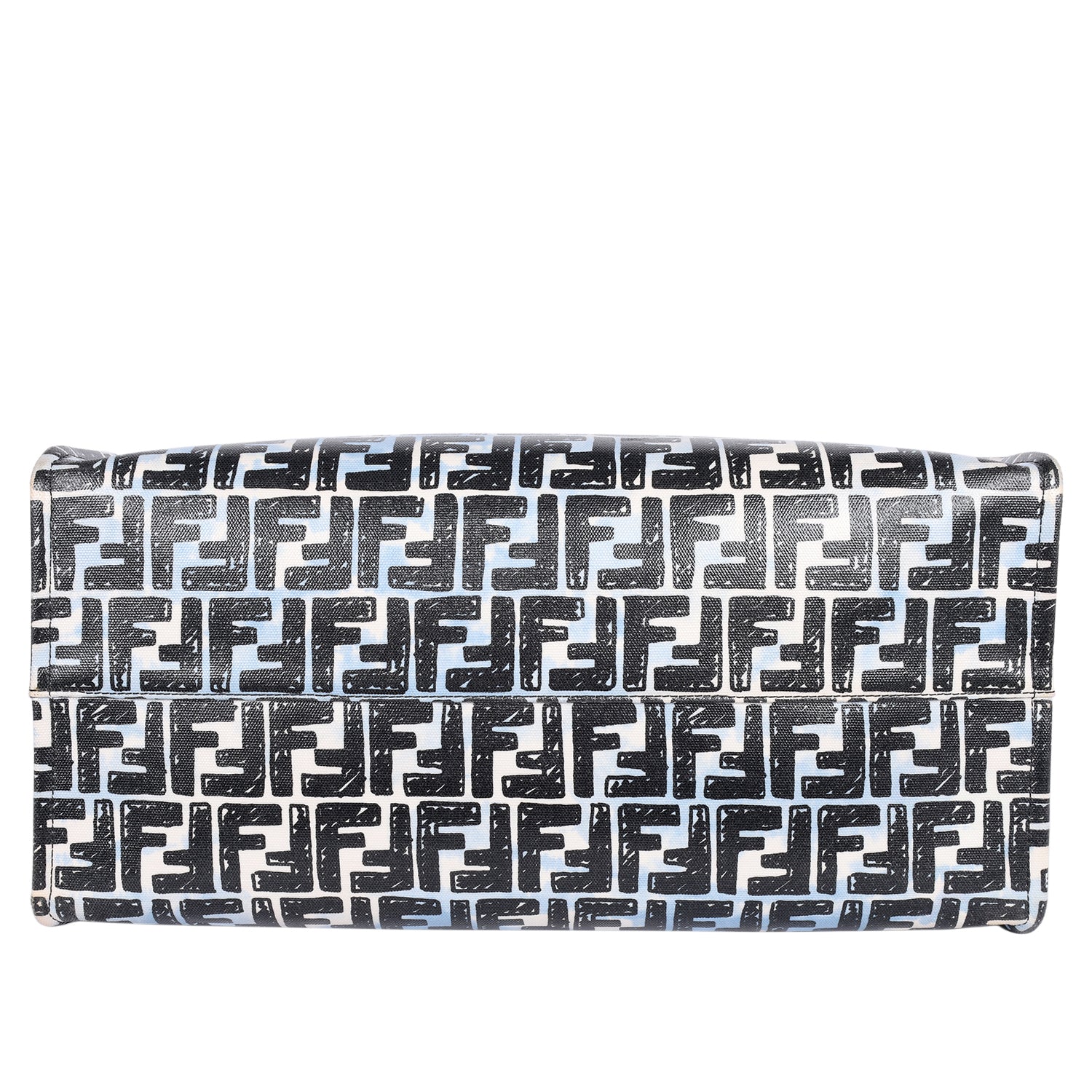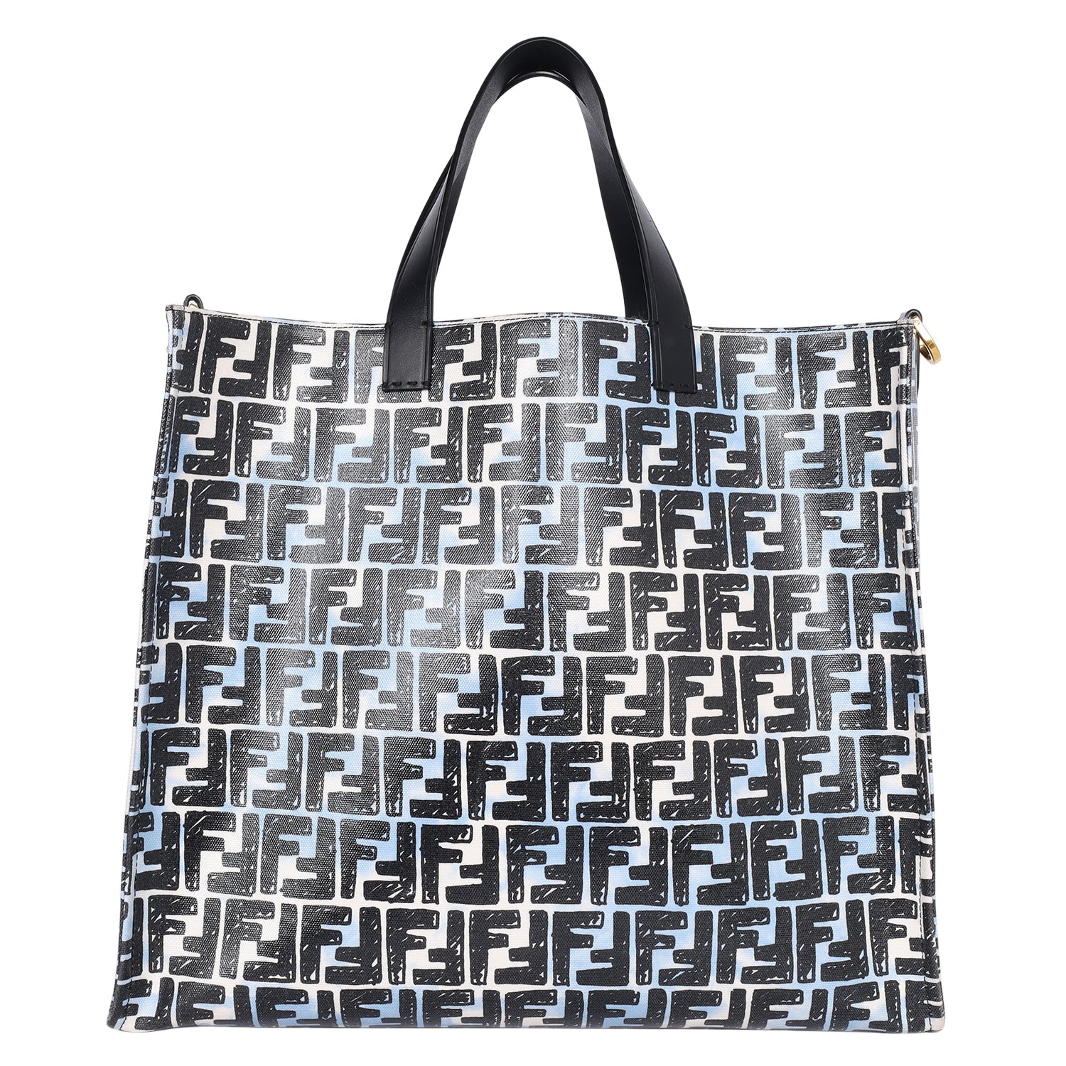 Authentic Fendi Joshua Vides Zucca Coated Canvas Cloudy Shopper Satchel Tote. The 2020 Fendi x Joshua Vides "California Sky" Zucca Coated Canvas Tote Bag is a amazing tote. The bag is a limited-edition featuring Fendi's iconic Zucca pattern reimagined through Vides' signature black and white marker-style illustration, top handles, open top closure, coated canvas that is durable and practical, making it perfect for everyday use. Would be a amazing work bag, beach bag, diaper bag or travel bag.