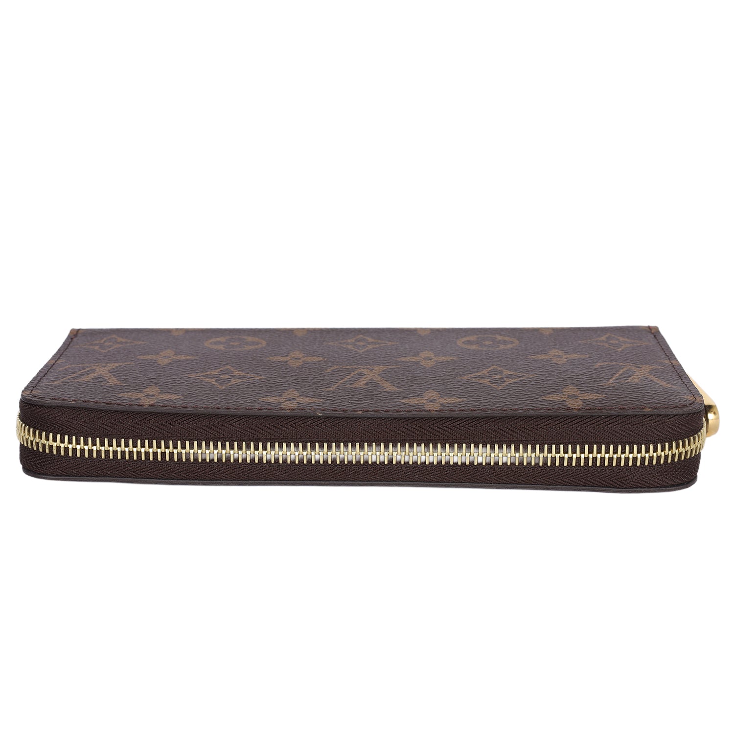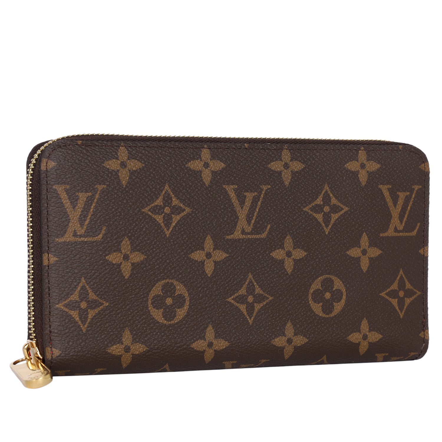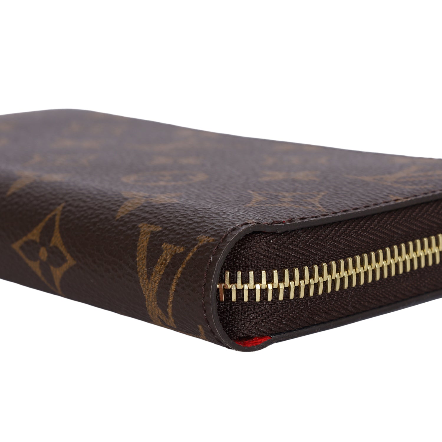Authentic Louis Vuitton Zippy Monogram Wallet. This classic wallet features traditional monogram coated canvas, zip around closure, opens to a red leather interior.
