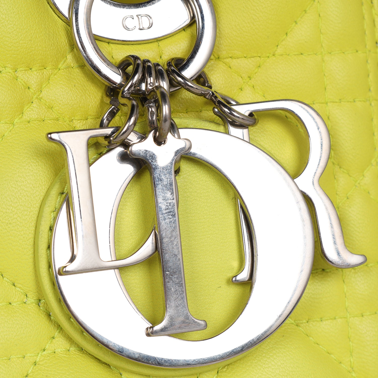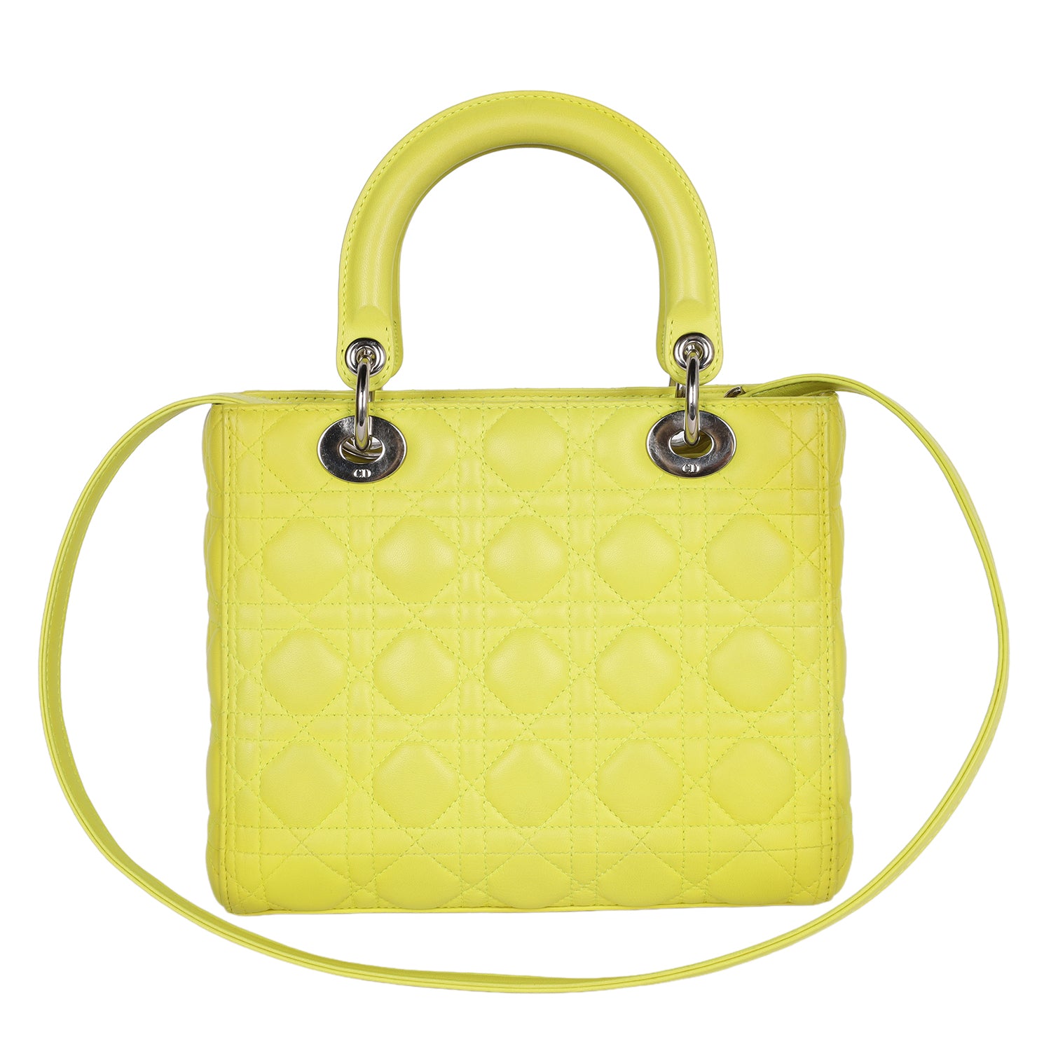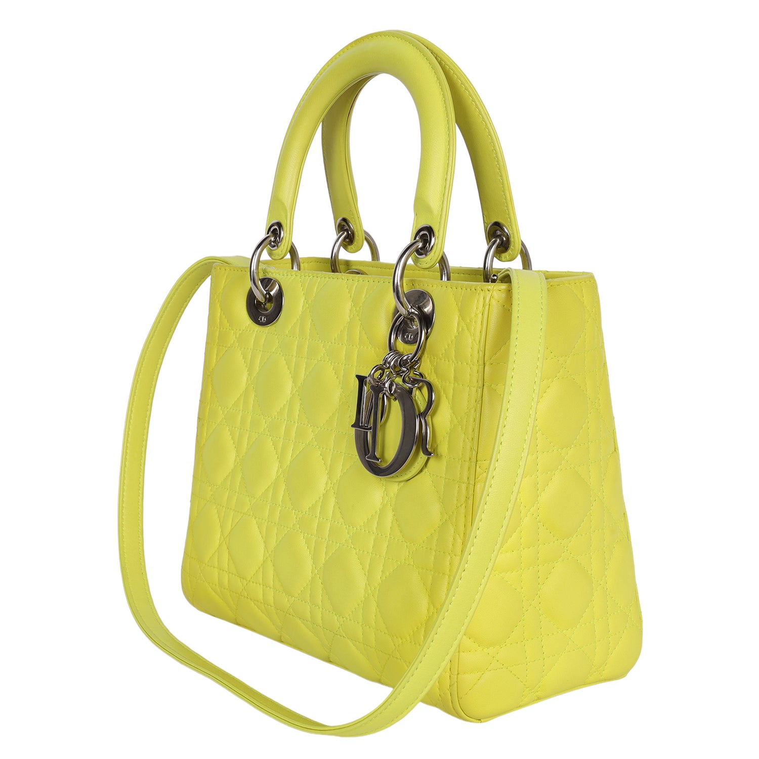 Lady Dior Yellow Lime Leather Shoulder Bag