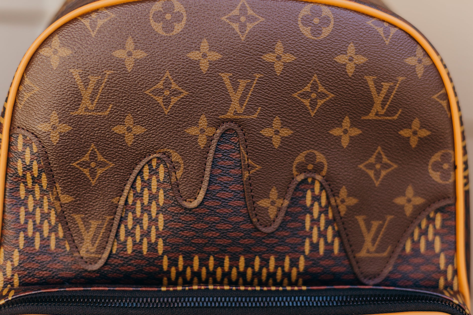 Authentic RARE Louis Vuitton Campus Patchwork Backpack wave in monogram canvas. The Campus Backpack was part of the Nigo capsule collection. Collaboration between Virgil Abloh and Japanese streetwear icon Nigo, the bag features Nigo's emblematic drippy wave motif on the front pocket in Monogram canvas. Features: Giant Damier Ebene with Monogram coated canvas, Textile lining Cowhide leather trim, Black hardware, Adjustable shoulder straps, Zip opening, Outside zipped compartment, Inside duo pocket, and inside flat pocket. Use this great backpack as your signature statement piece. Your going to love the room for your laptop, books, wallet, keys, phone, and much more. Would make the perfect day to evening bag, travel bag, business bag, or gym backpack. Backpack only the Keepall is for sale on our site.