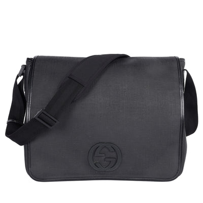 GUCCI Coated Canvas Interlocking G Large Flap Messenger Bag Black