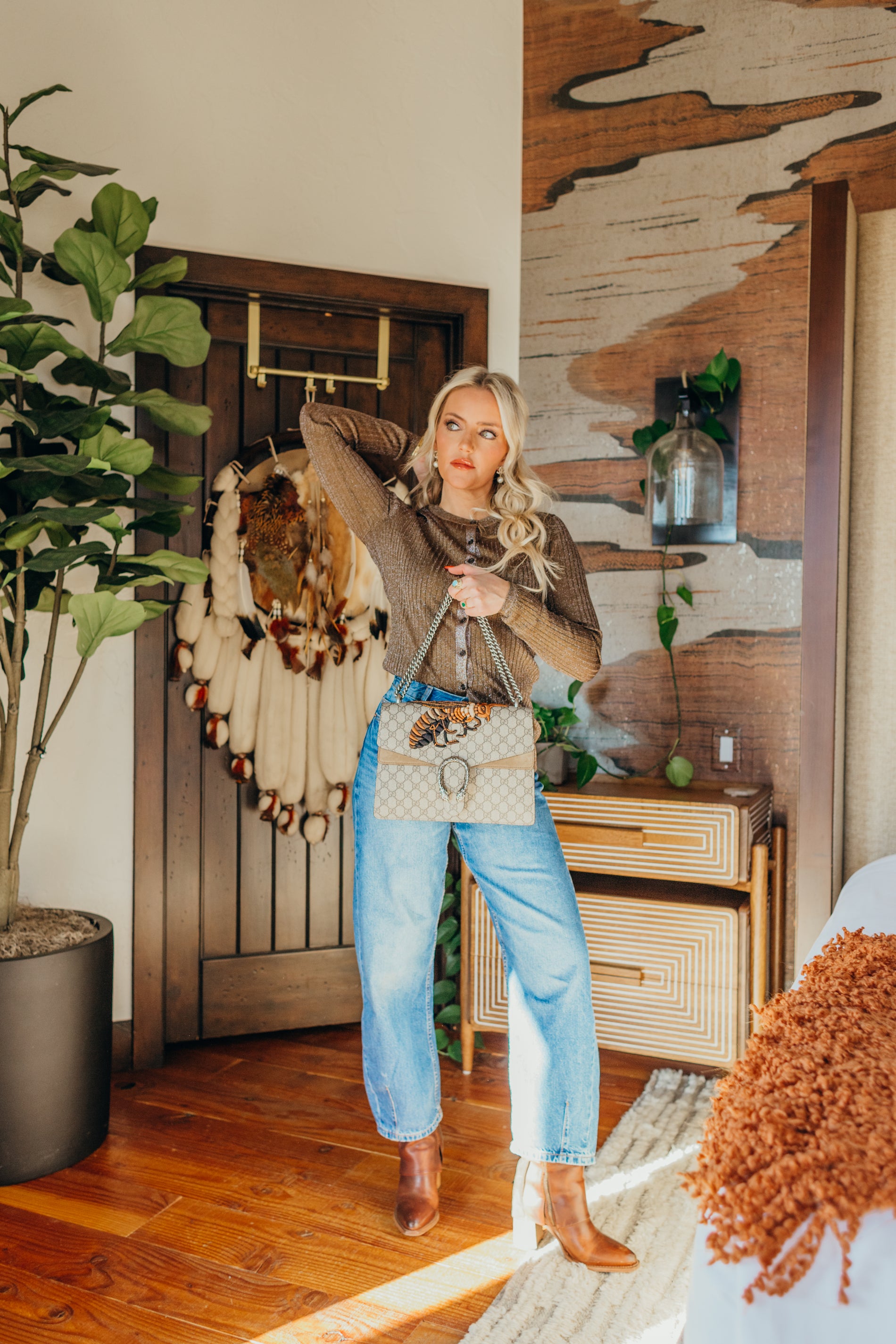 The interior reveals a taupe-brown suede flap with a coated canvas front pocket, providing both luxury and practicality. Compact yet spacious, this bag effortlessly fits your iPhone, wallet, cosmetics, and other daily essentials.