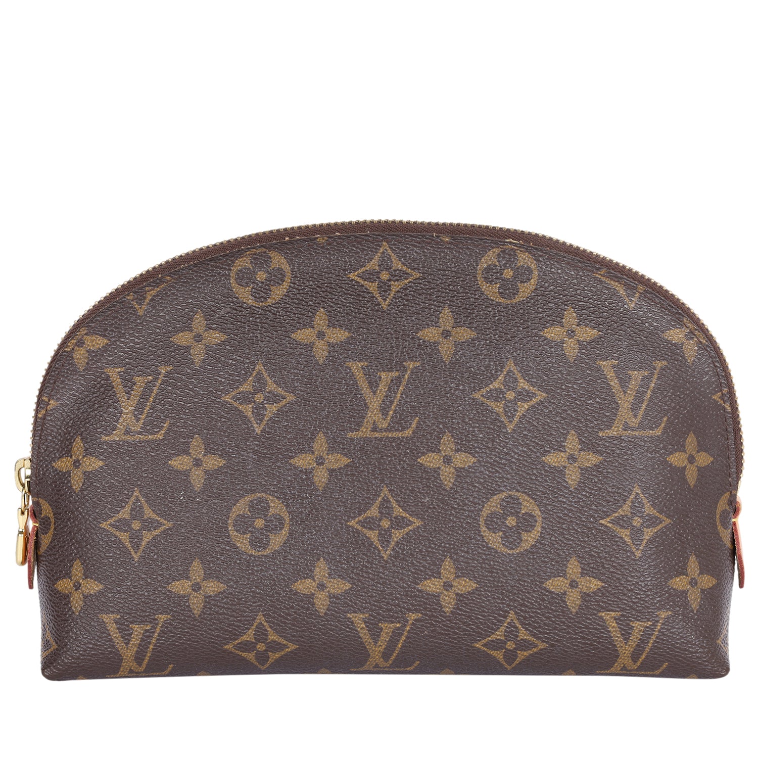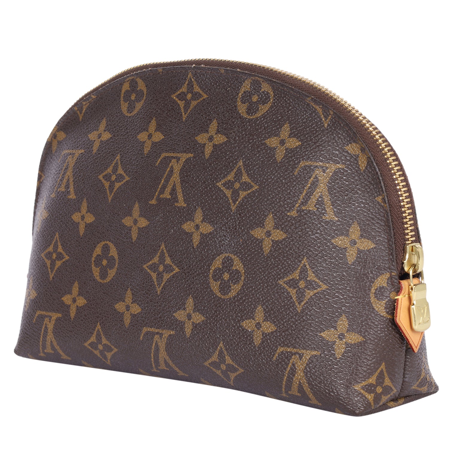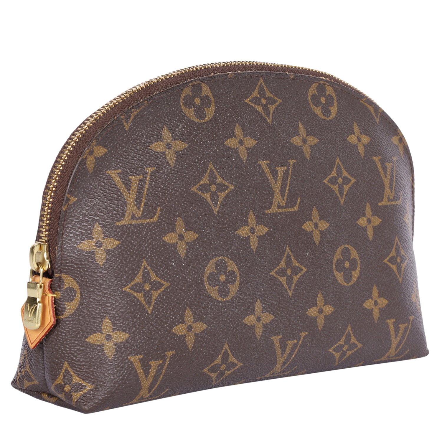 Authentic LIKE NEW Louis Vuitton Monogram Cosmetic Pouch GM. Features monogram canvas in brown, zipper top closure, gold hardware, opens to a washable interior with 2 slip pockets.