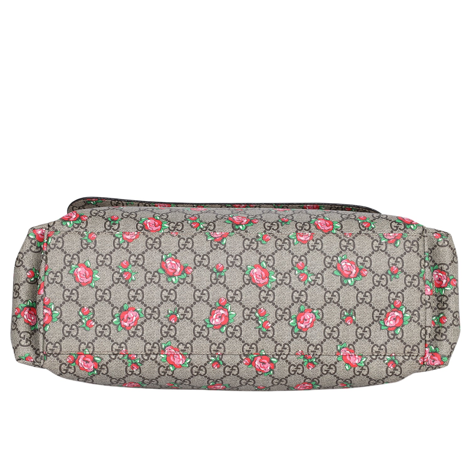 GUCCI Strawberry Print GG Canvas Diaper Bag Beige Multicolor