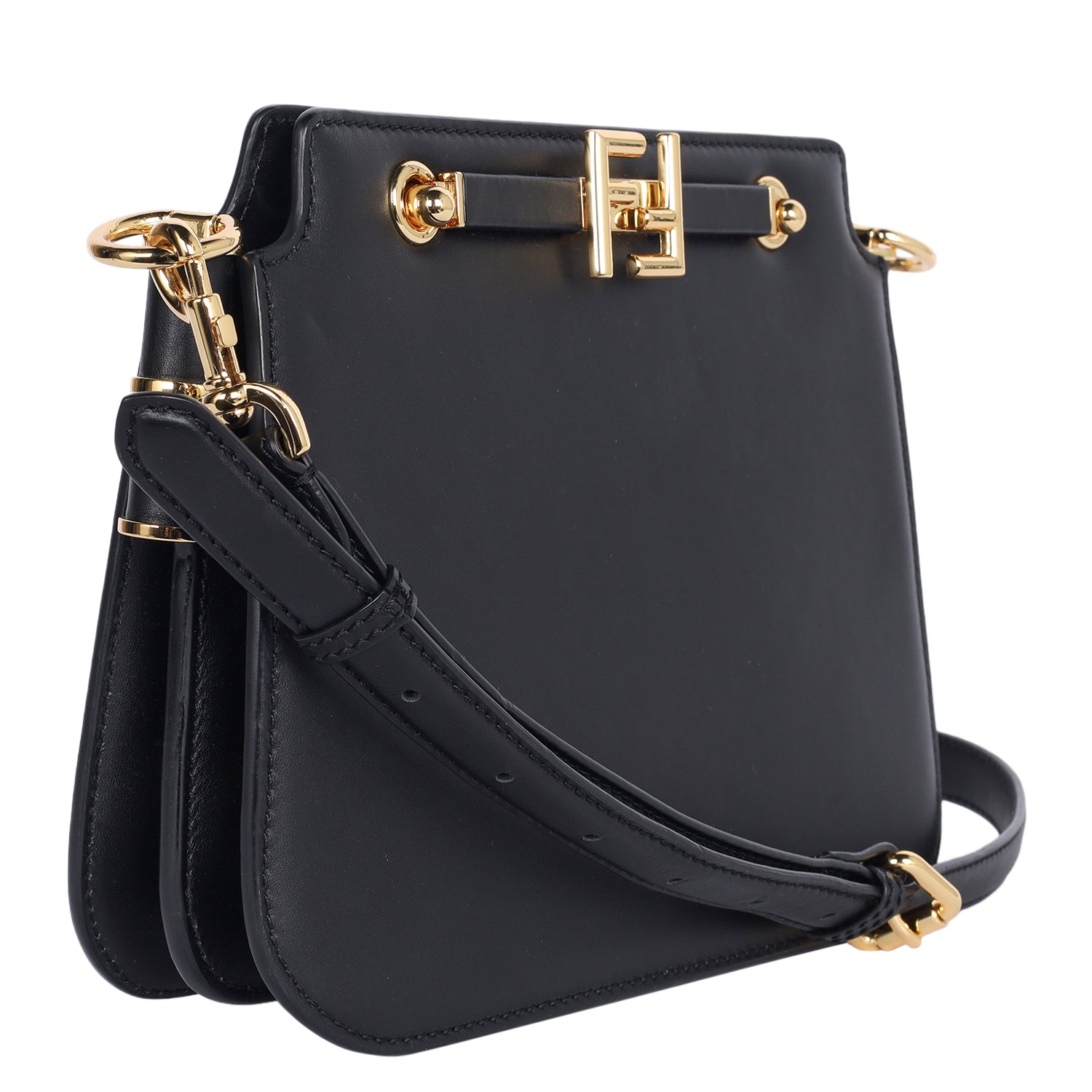 FENDI Vitello King Luxor Fendi Touch Shoulder Bag Black