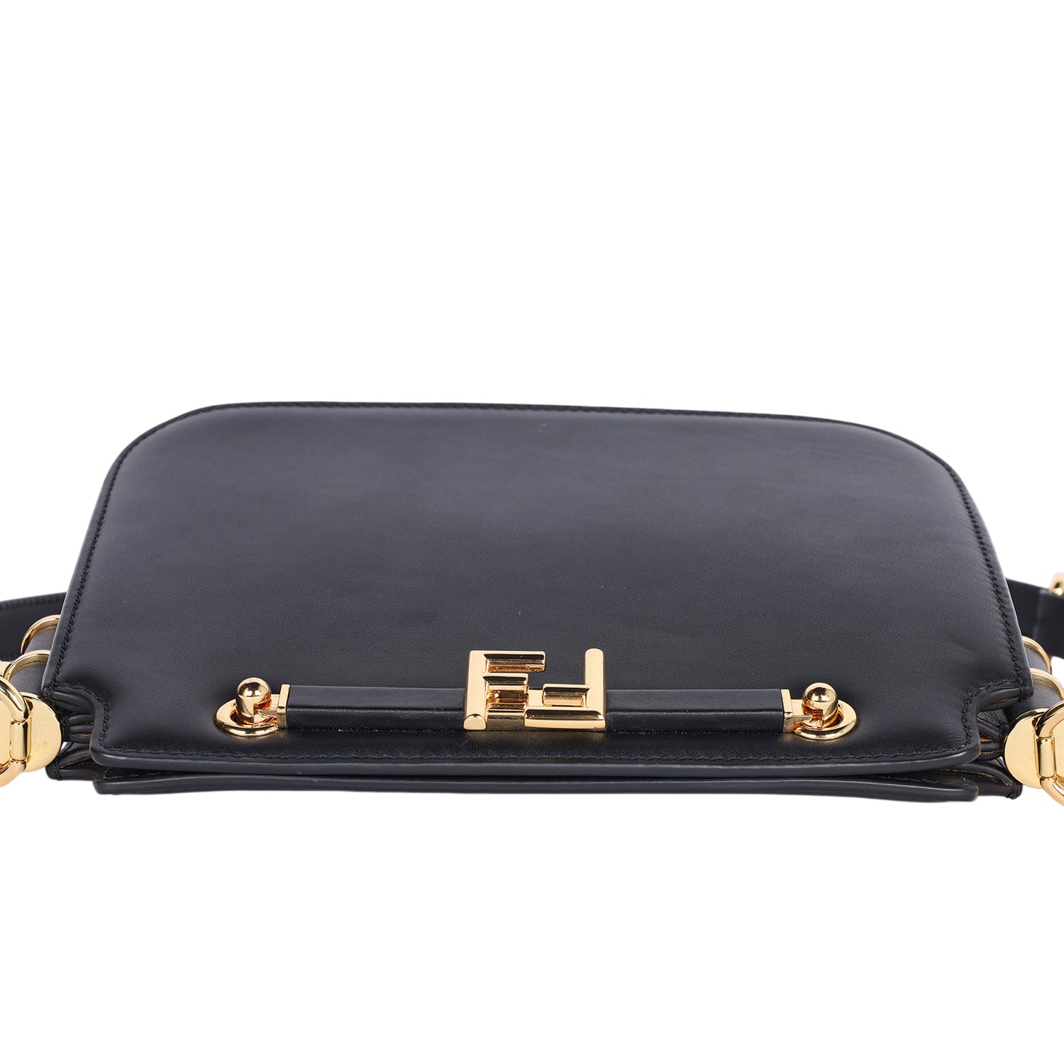 Authentic Black Vitello King Luxor Fendi Touch Shoulder Crossbody Bag.